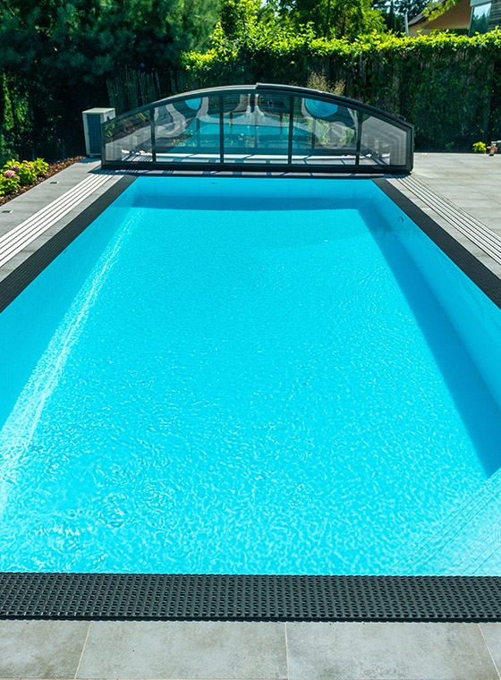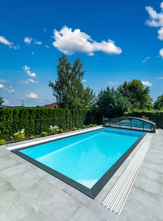 Ein Pool mit Dach bietet nicht nur dem Pool Schutz vor Verschmutzung und Regen, sondern beugt auch vor Unfällen um den Pool herum vor.