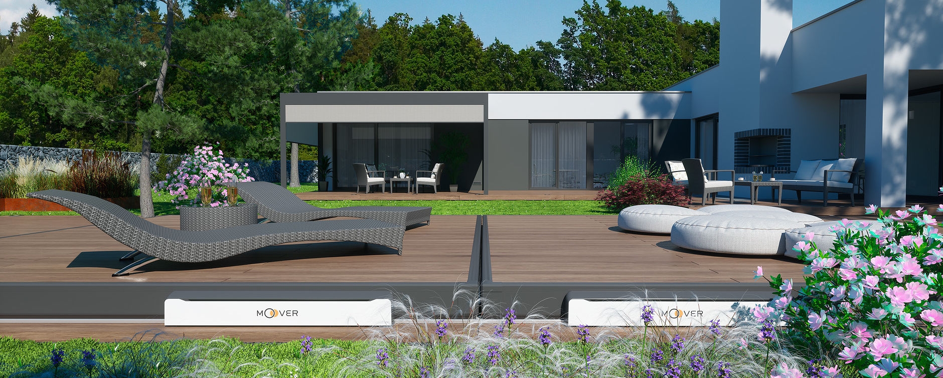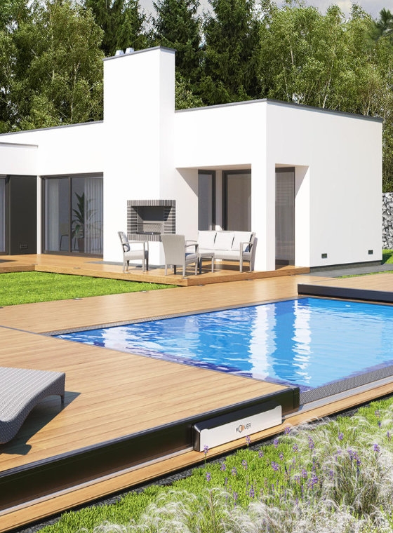 • Öffnen und Schließen des Pooldecks manuell oder ferngesteuert durch den MOOVER-Elektroantrieb