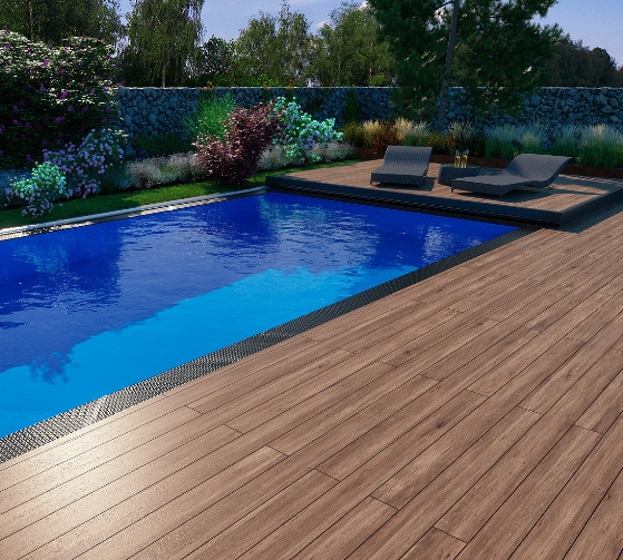 • Belag der begehbaren Poolüberdachung kann auch als Belag für die Terrasse verwendet werden
