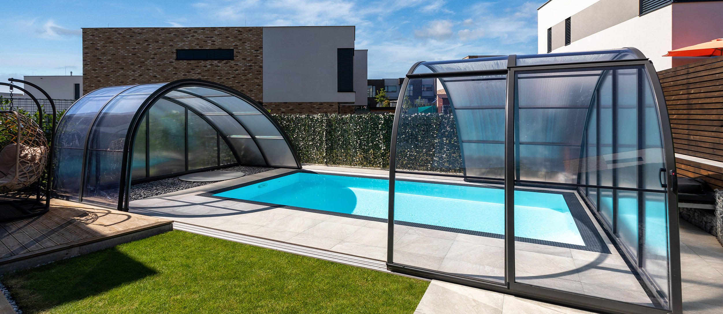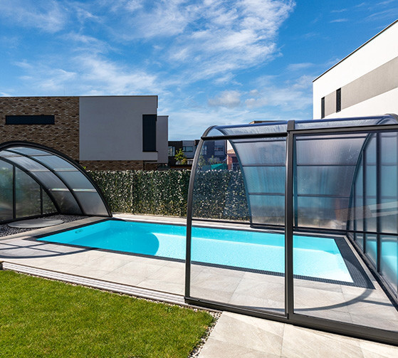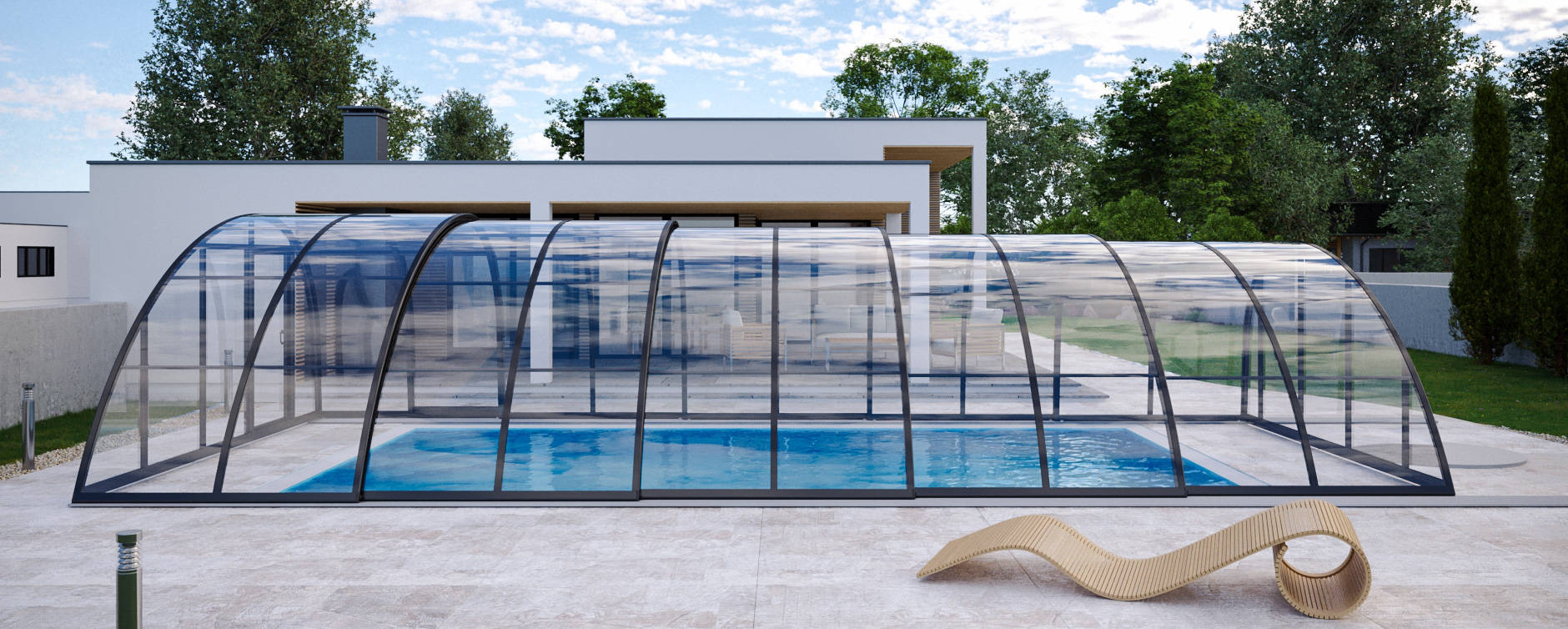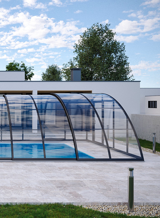 Die Überdachung MONACO FUTURE wird zu einer außergewöhnlichen Dekoration in jedem Garten. Genießen Sie den Spaß mit Freunden am Pool, toben Sie mit den Kindern im Wasser, halten Sie sich beim Schwimmen fit oder entspannen Sie sich, egal wie das Wetter draußen ist.